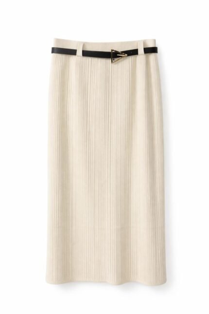 Jupe longue plissée femme avec ceinture