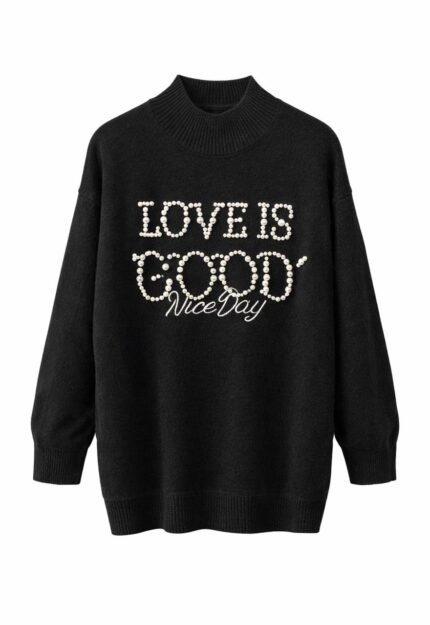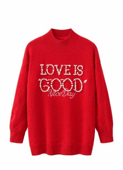 Pull femme d’hiver brodé – Love Is Good Nice Day
