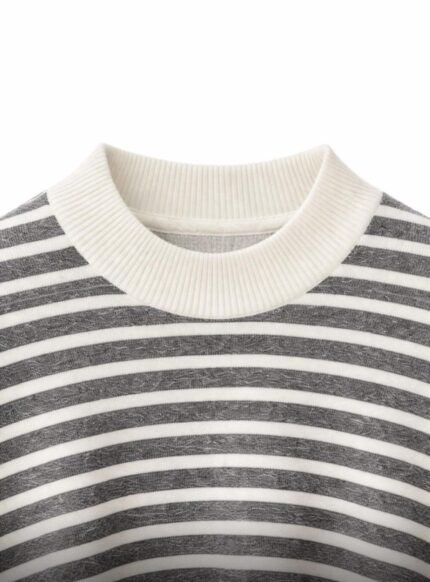 Pull femme rayé coupe ample – Gris et écru
