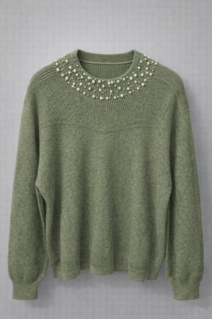 Pull femme élégant avec col perlé – Pull chaud hiver chic