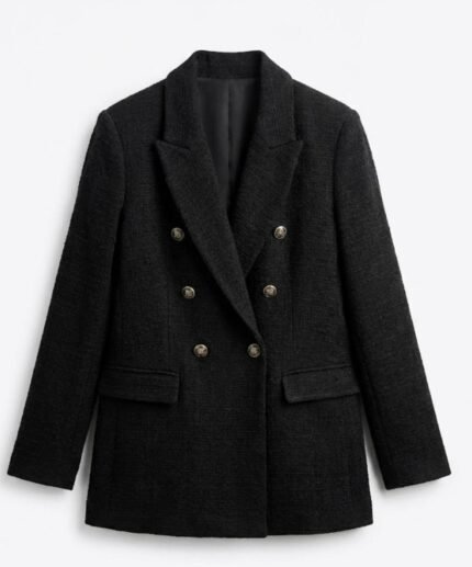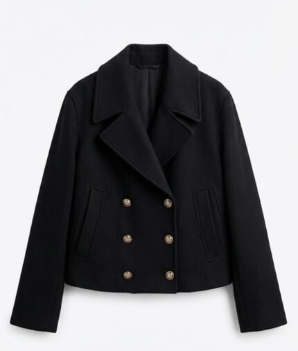 Veste courte noire élégante à double boutonnage – coupe moderne et chic