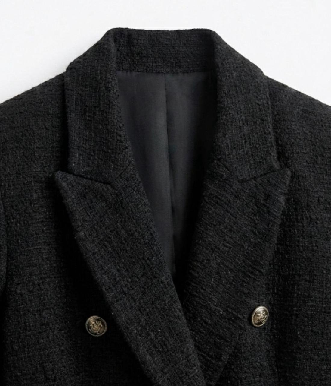 Veste courte noire élégante à double boutonnage – coupe moderne et chic