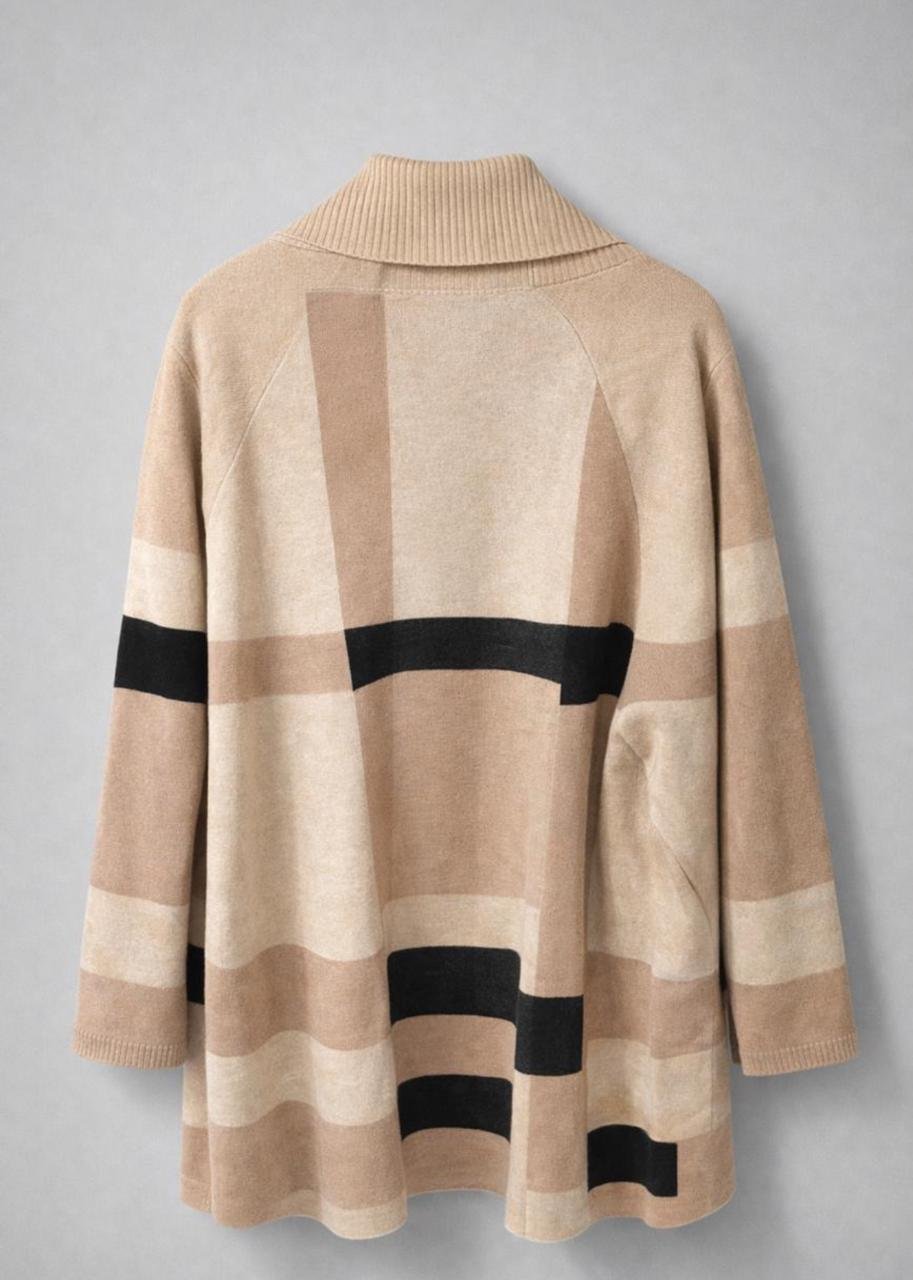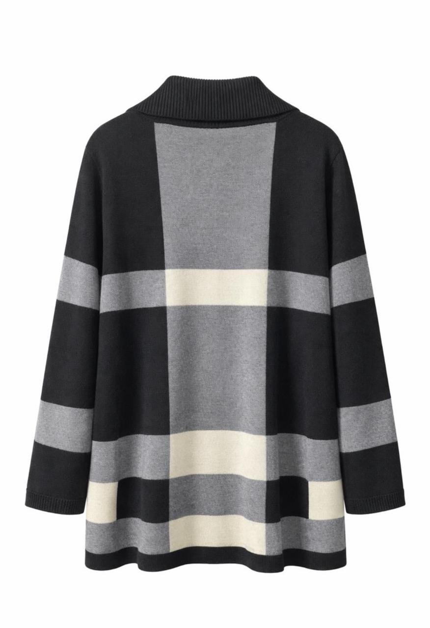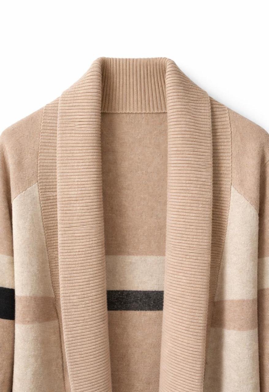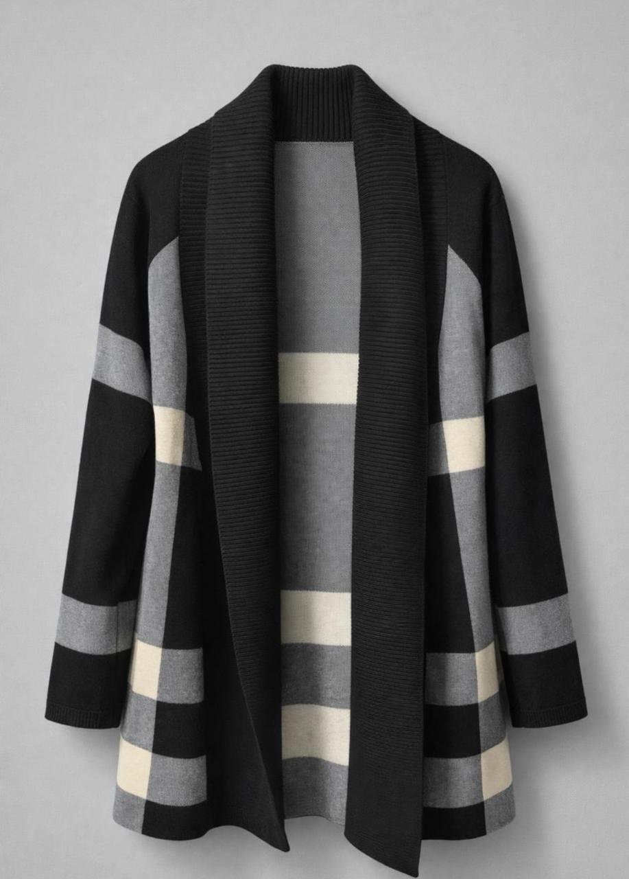 Cardigan long femme à col châle – Motif à carreaux modernes