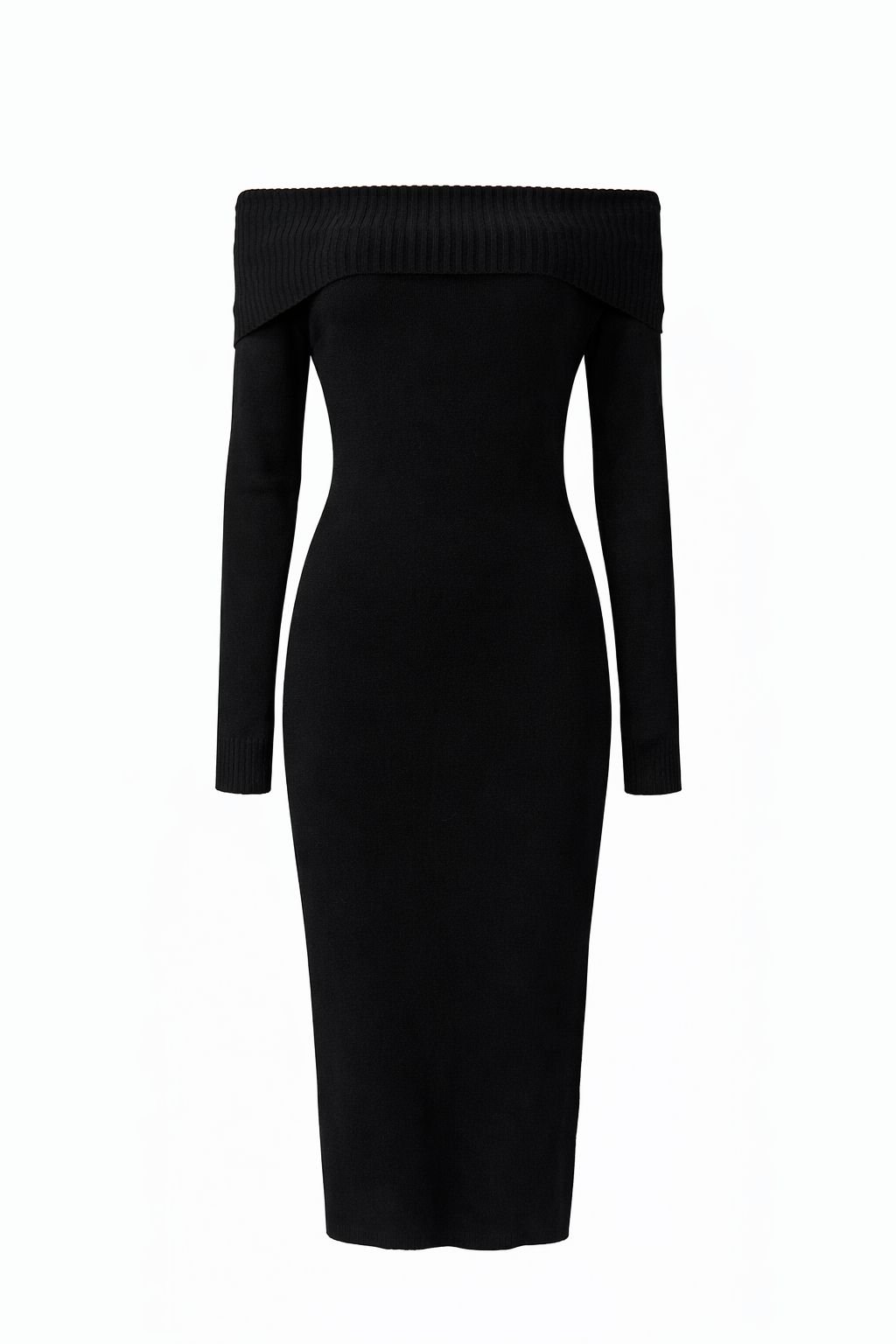 Robe longue moulante en maille – Épaules dénudées